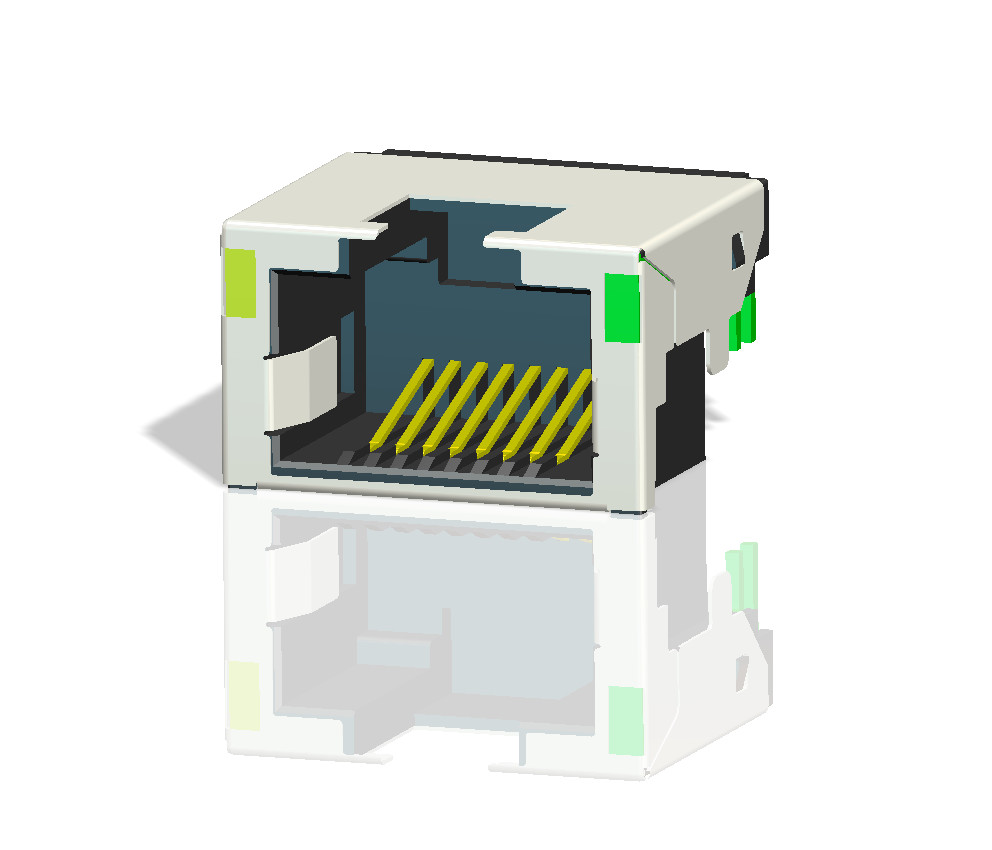 HULYN新品,RJ45模块化连接器,沉板9.8mm,板上4.3,超薄带灯