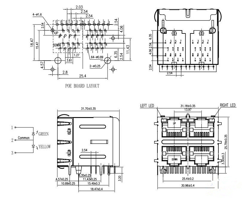 10/100/1000 Base-TX RJ45 2xN Integrated Magnetics Connector, designed tosupport such applications as: Switches, Routers, Servers and Hub.