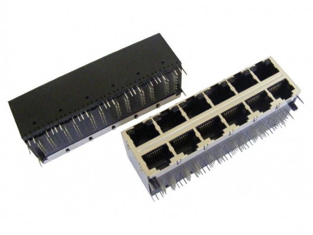 2X6 Stacked RJ45 Jack With transformer and light Pipe 1000Base