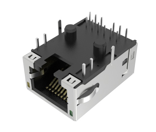 10G Base-T magnetic through-hole RJ45 connector shielded with LEDs