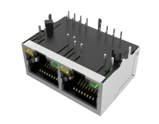 RJ45 with transformer, 1x2, With LEDs, 100Mbps