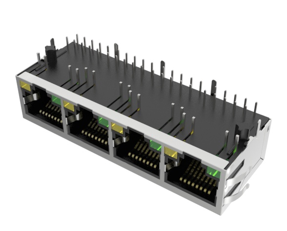 10/100/1000Base-TX RJ45 1x1 Tab-DOWN Integrated Magnetics Connector,