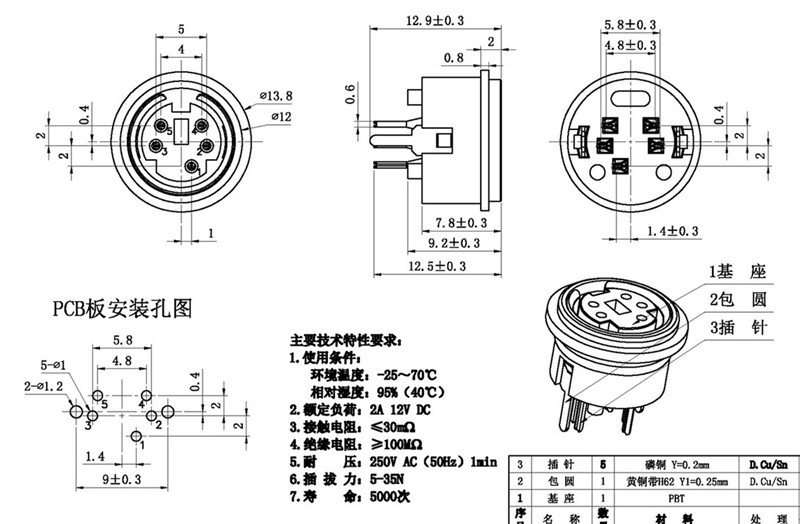 You are hear:Home > Products > DSW & Mini Din Jack > DSW & Mini Din Jack, 5Pin, Receptacles, Through Hole Type