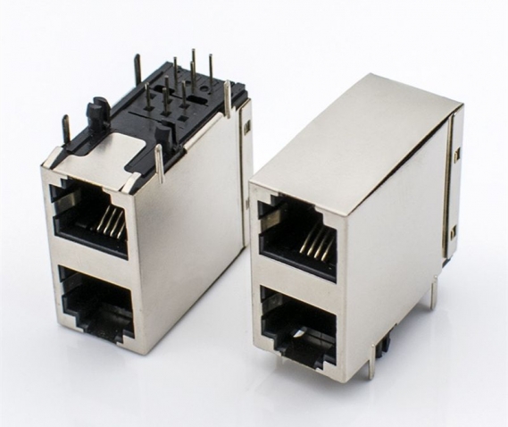 双层RJ11连接器,屏蔽,6P4C,2x1