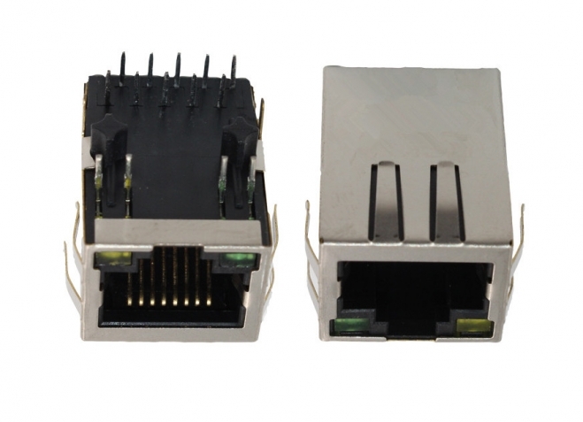 10/100/1000Base-TX RJ45 1x1 Tab-DOWN Integrated Magnetics Connector,