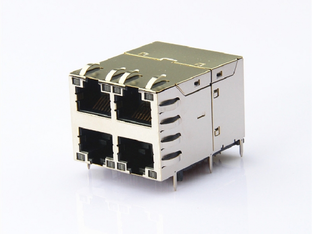 双层2X2带千兆变压器,RJ45插座,带灯POE