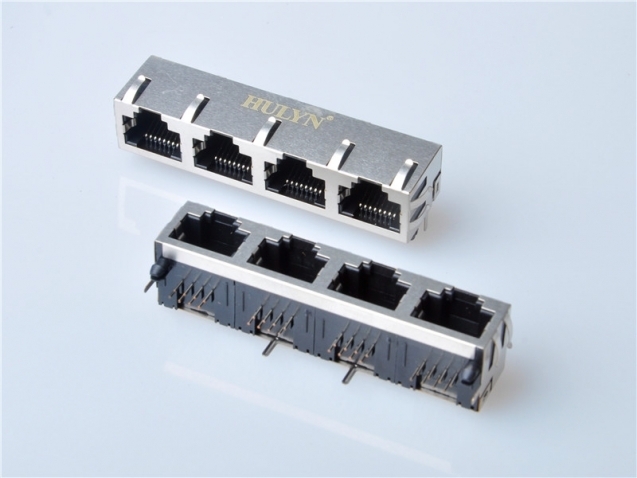 RJ45 1x4 8P8C 屏蔽 90度,插座无灯带弹