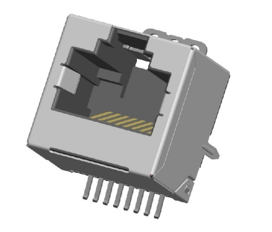 立式RJ45连接器,屏蔽无灯,SMT贴片式,H=12.9mm