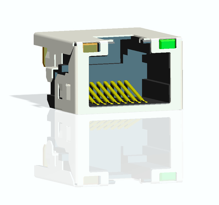 Shielded RJ45 Modular Jack, Through Hole Type, Offset, LED