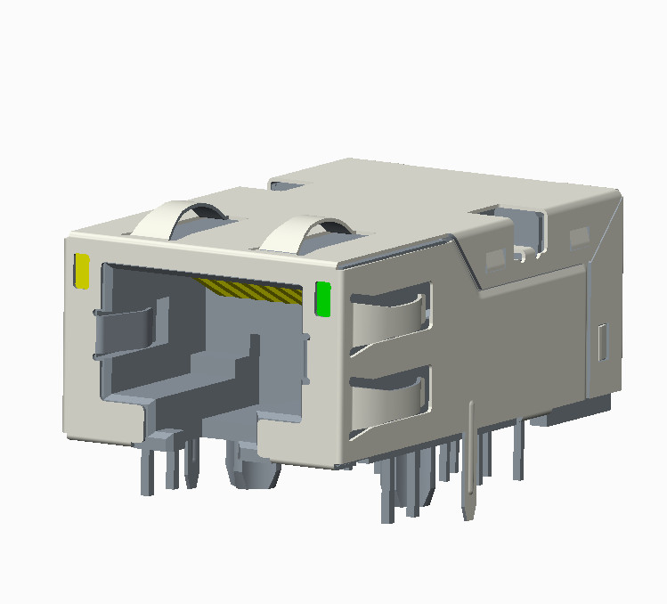 RJ45 连接器10G 带灯/带屏蔽,TAB-DOWN L=28.57mm