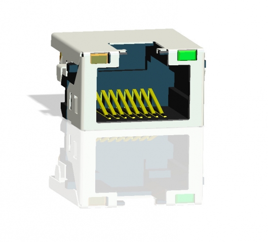 超薄RJ45连接器,带灯沉板,高9.8mm,板上高度2.95MM