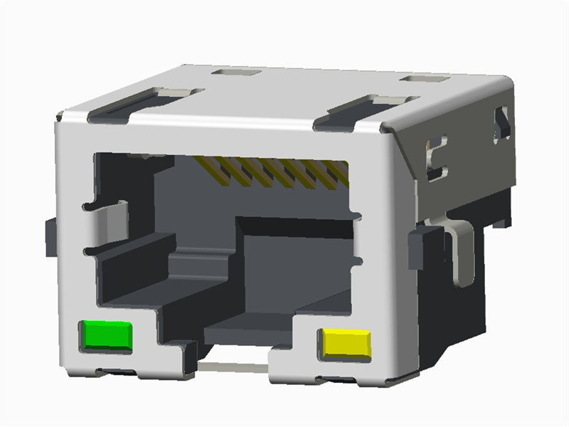 沉板式RJ45插座 H=12,板上高度6.75 左绿右黄