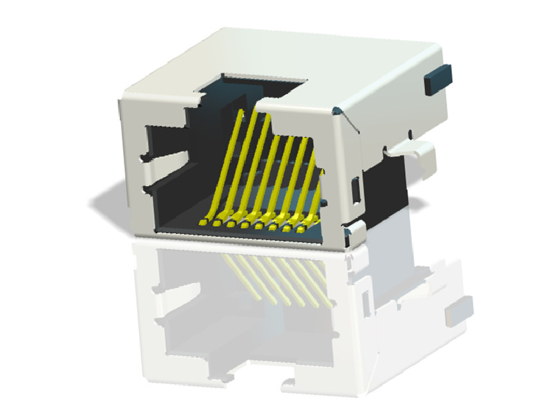 沉板RJ45连接器,薄款,无灯H9.8, 板上5.15mm