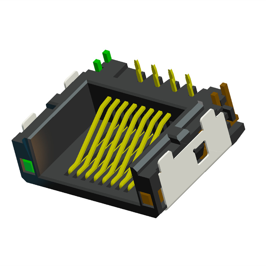 HULYN,Half section, Shielded RJ45 Modular Jack, Offset, With LED, H=4.7mm