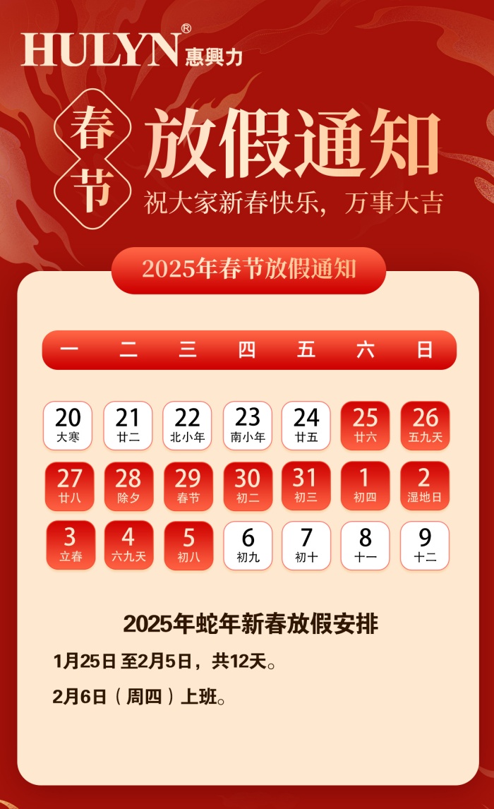HULYN Huixingli 2025, Chinese Lunar New Year holiday notice: