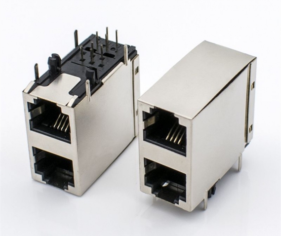 Shielded RJ11 Telephone Connector, Through Hole Type, Side Entry, 2x1 Ports