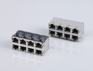 Stacked RJ45 Modular Jack 2x4 With LEDs