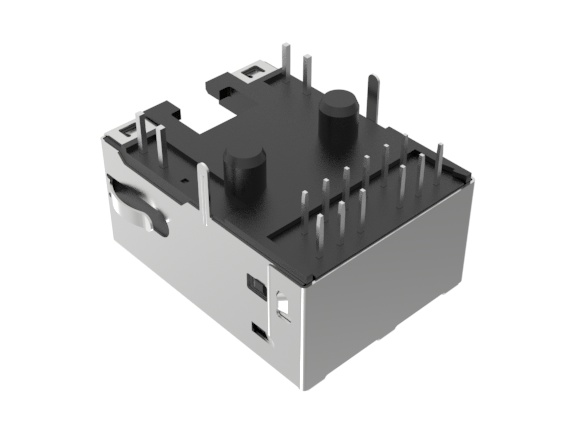 RJ45 Connector 10G with light / shield, TAB-DOWN L=28.57mm