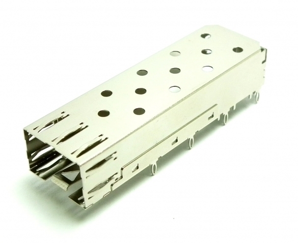 SFP 1x1 cage, Press-fit, Copper Alloy, Ni Plating, Light Pipe, Spring Tabs