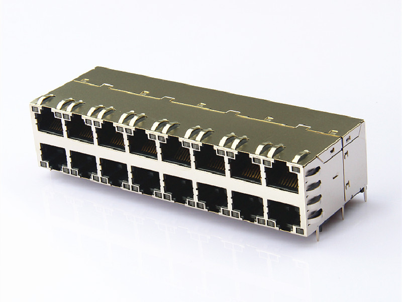 Gigabit, double-layer 2X8 with transformer, RJ45 socket, with light POE
