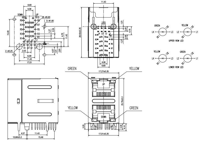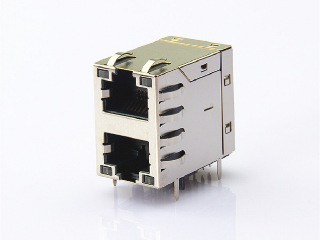 2X1 Stacked RJ45 Jack With 1000Base transformer and LEDs