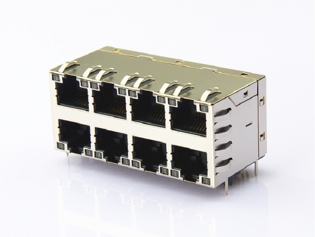 2X4 Stacked RJ45 Jack With transformer and bicolor LEDs