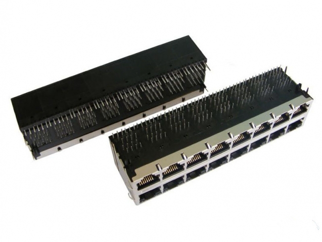 2X8 Fast Stacked RJ45 Modular Jack With transformer and light-pipe LEDs