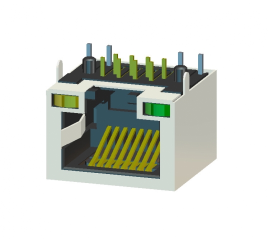 Ultra-thin RJ45 Connector with LED, TAB-DOWN, H = 11.3mm