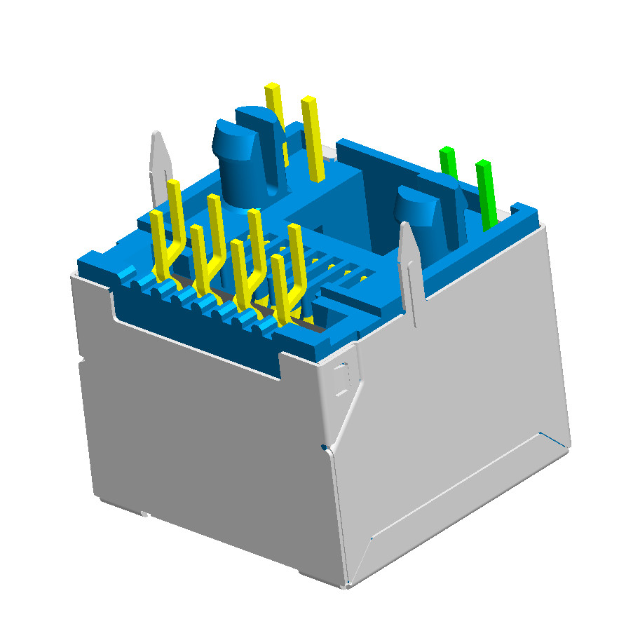Vertical RJ45 connector with light shield, H=12.9mm