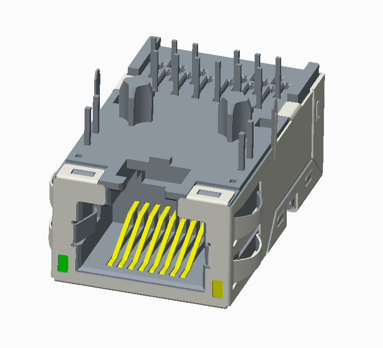 RJ45 Connector 10G with light and shield, TAB-DOWN L=28.57mm
