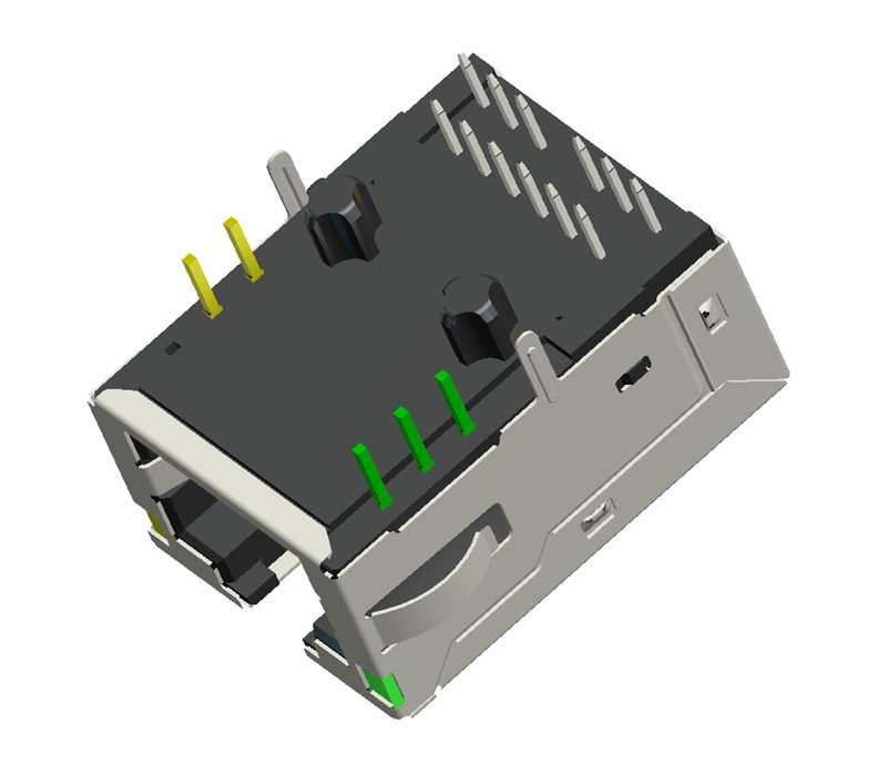 100/1000Base-T RJ45 single port (1x1) Tab-UP integrated magnetics connector, designed to support