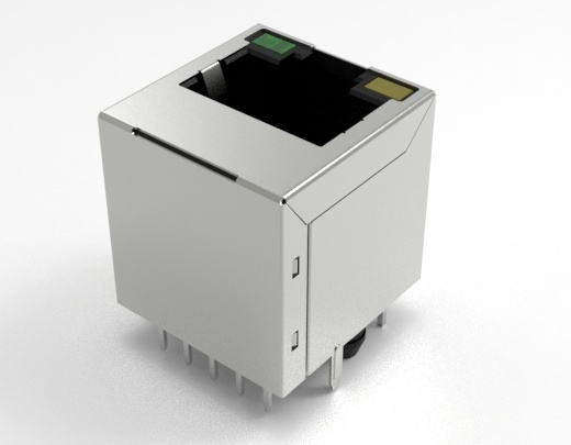 10/100/1000Base-TX RJ45 1x1 Tab-DOWN 8-pin Integrated Magnetics Connector,