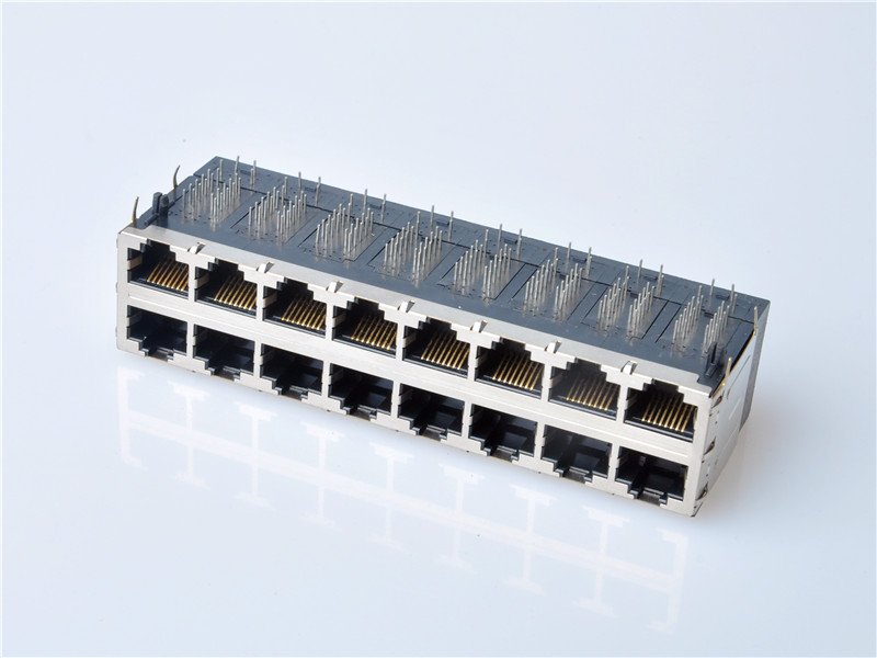 Stacked 2X8 with POE, RJ45 connector with transformer, Gigabit