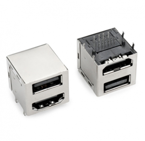 USB2.0AF+HDMI AF, double -layer 90 -degree plug -in