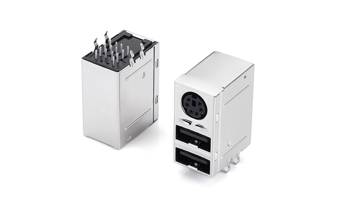 You are hear:Home > Products > DSW & Mini Din Jack > MINI DIN+double-layer USB 2.0 connector black