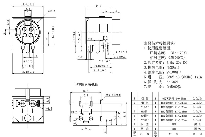 DC JACK Through Hole Type, Receptacle...
