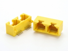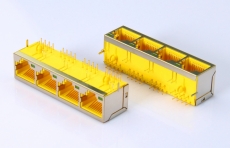 RJ45接口 1x4 带灯屏蔽,黄色塑胶...