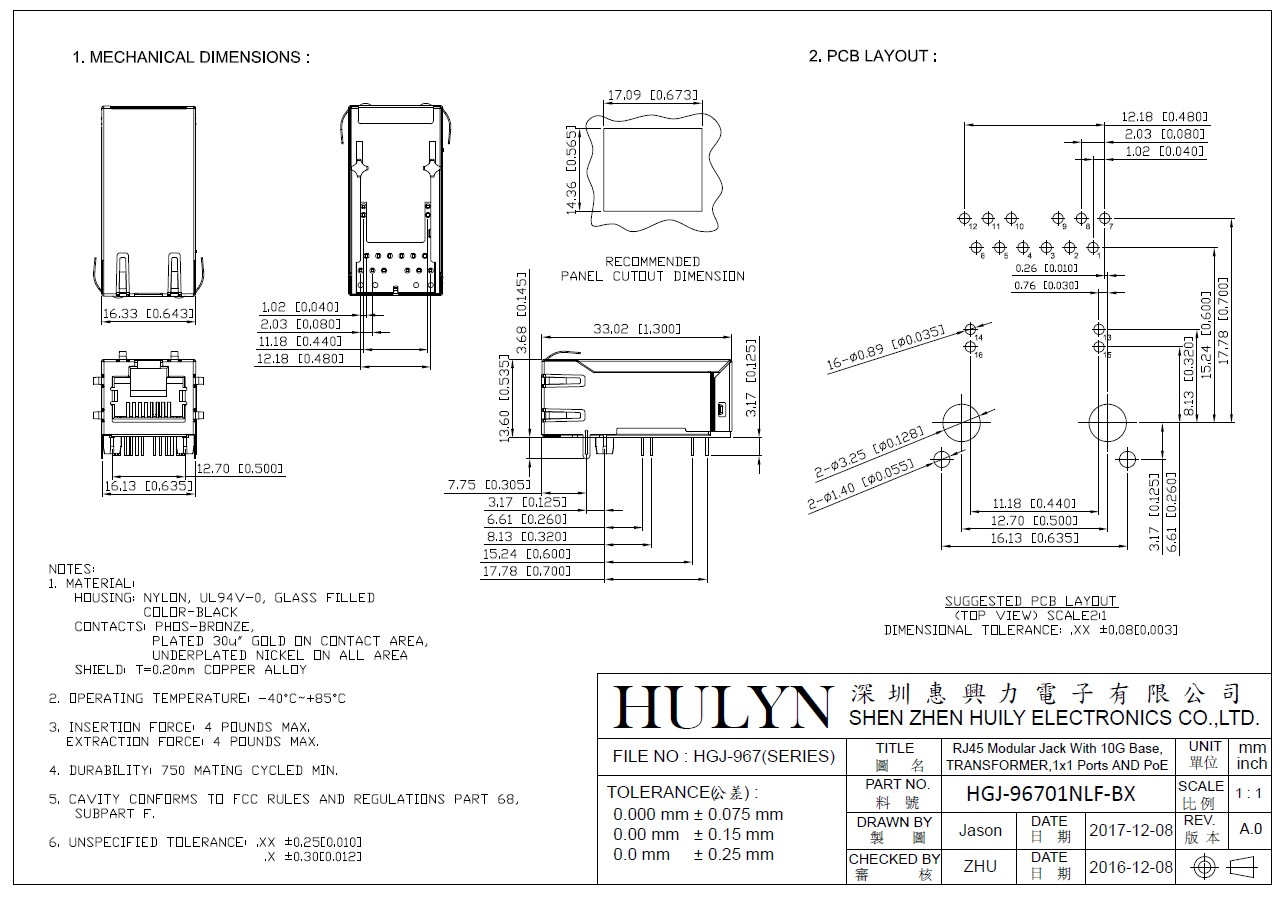 HULYN公司RJ45連接器帶10G變壓器,已批量生產