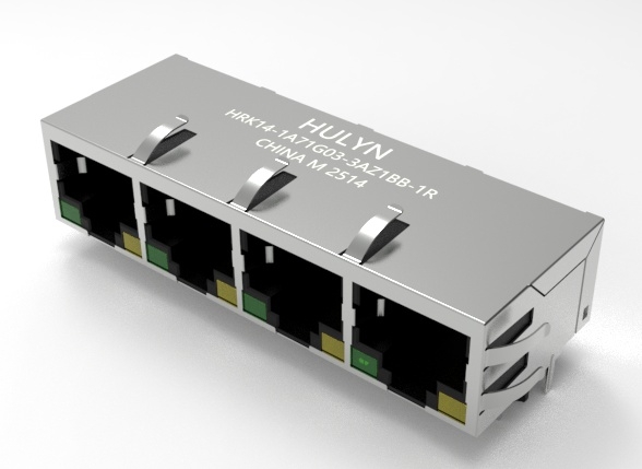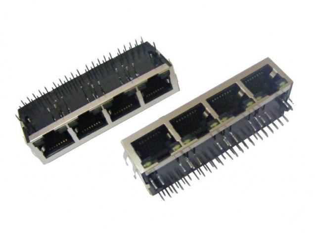 RJ45 1X4千兆带变压器,RJ45插座 ,带灯带弹,四口90度