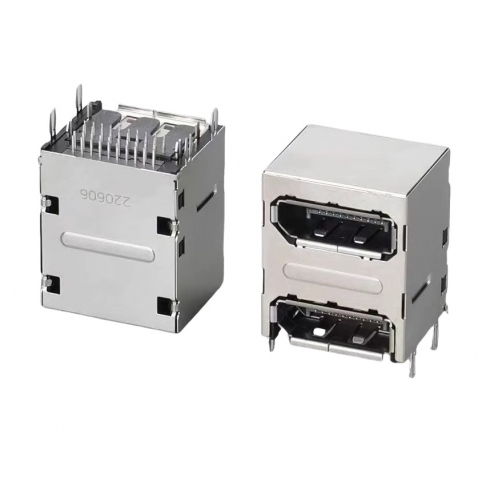 双层DISPLAYPORT 连接器,母座DIP 鱼叉脚