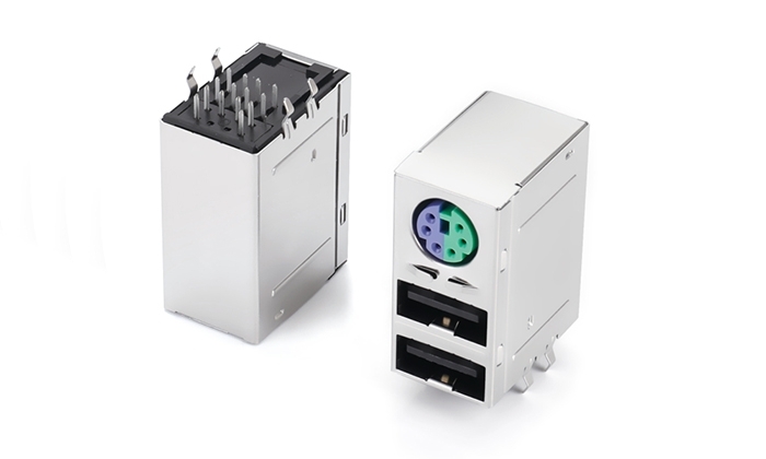 MINI DIN+双层USB(3.0)连接器,鱼叉间距(12.0)